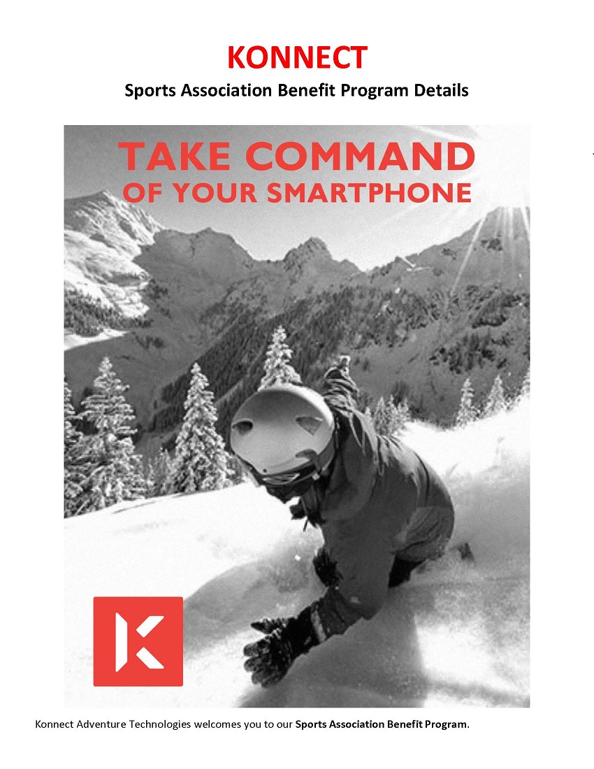 Konnect Adventure Technologies welcomes you to our Sports Association Benefit Program. We are excited to work with you and be listed as a membership benefit to your association members. For the 2020 Spring ski season, the association membership discount is 30%.
